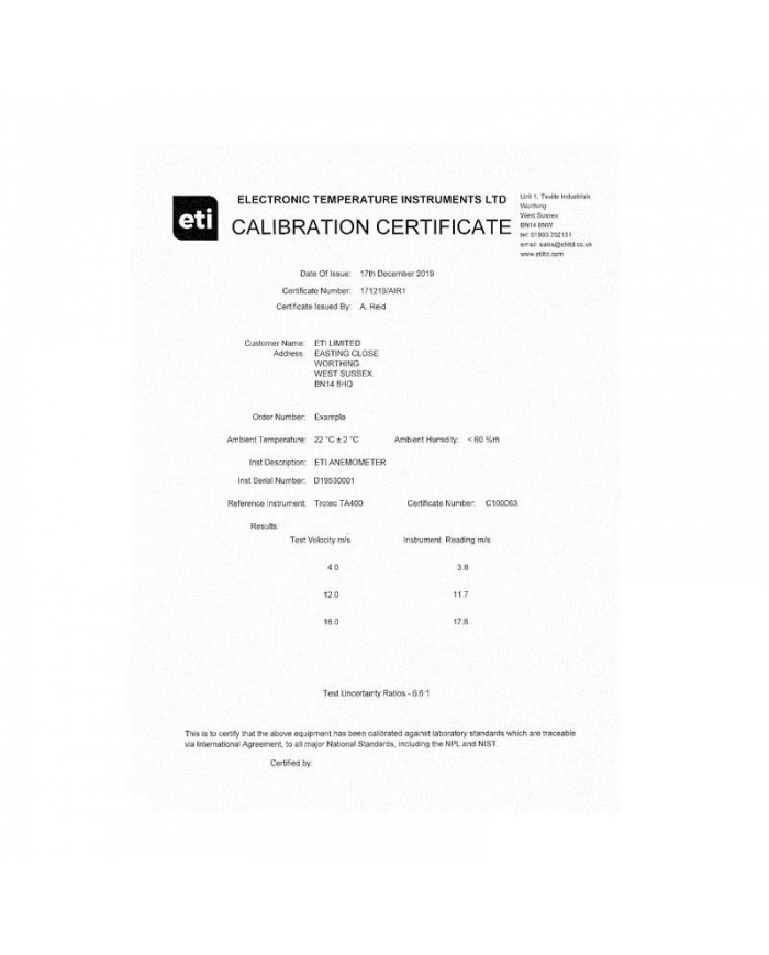ETI Kalibreringscertifikat