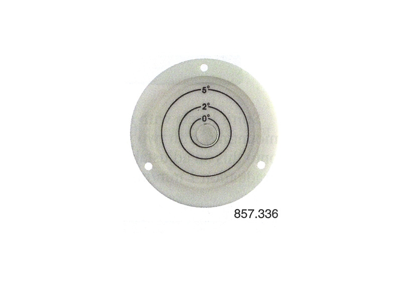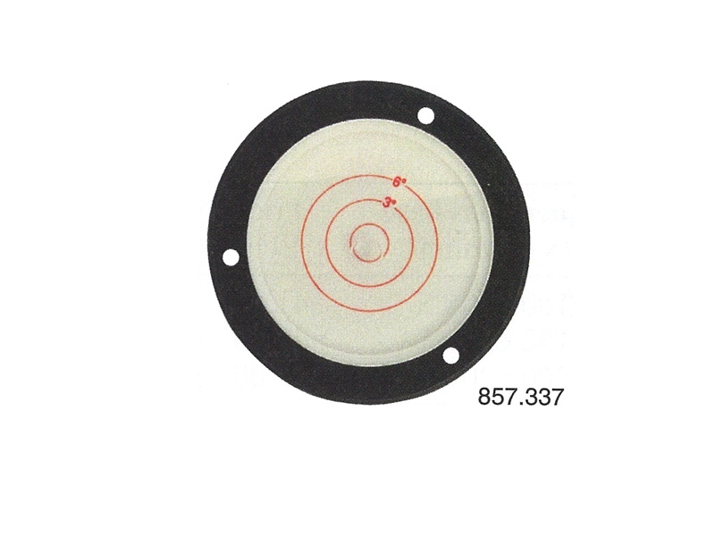 2.129 krVattenpass med cirkellibell, svart synthölje med ram och skruvhål ø5 mm, extra skalcirklar, vit bas, diameter 100/75 mm, höjd 5+10 mm, avläsning 0°–3°–6°