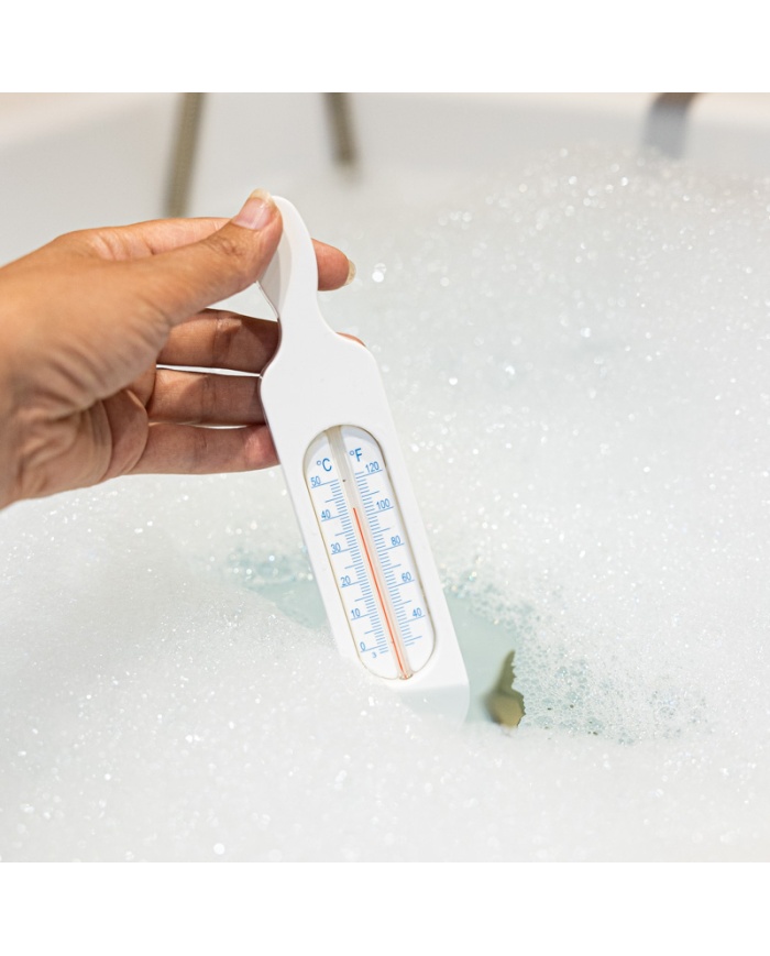 Du kan också placera den nedre halvan av badtermometern under en rinnande kran för att kontrollera temperaturen innan du fyller badet.
