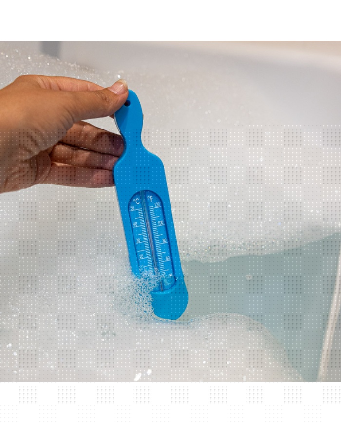 Placera badtermometern direkt i badvattnet och vänta på att avläsningen stabiliseras. Det hjälper till att säkerställa en säker, bekväm temperatur för spädbarn, barn, vuxna eller äldre individer.