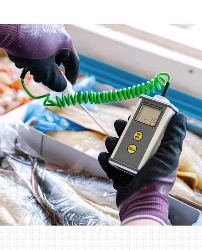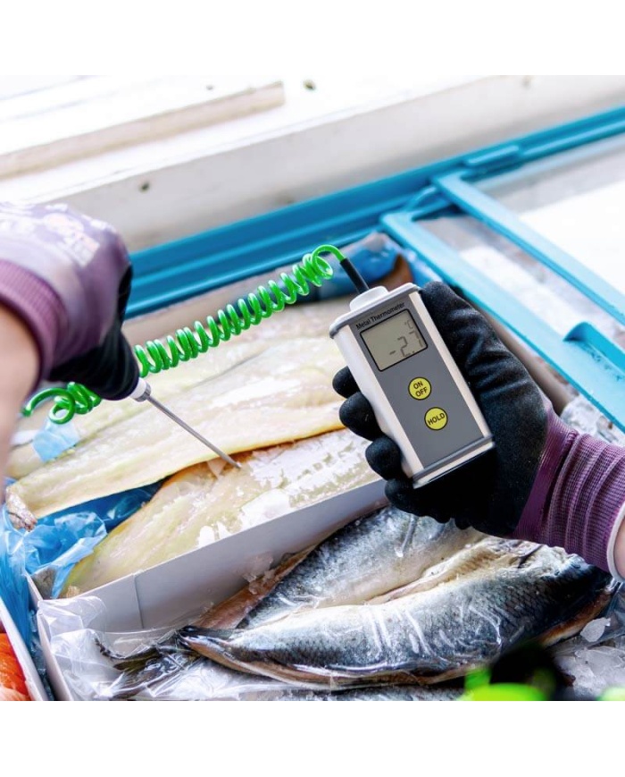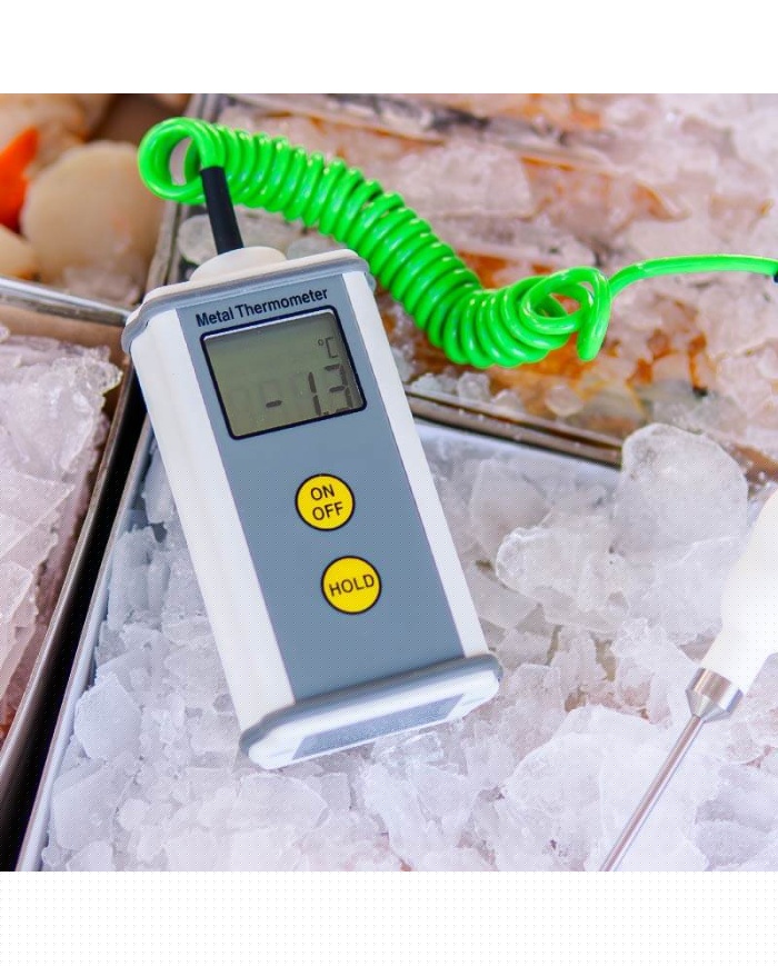 CaterTemp Metal handhållen termometer är inrymd i ett robust extruderat aluminium vattentätt fodral med en pulverlackerad yta, som erbjuder IP67, helt vattentätt skydd.