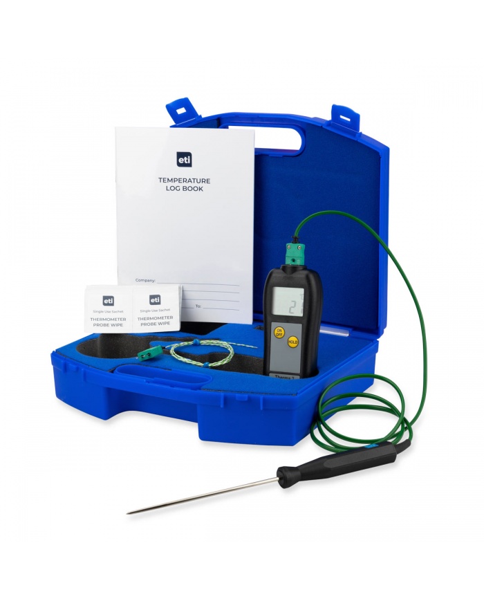 ETI Therma Waterproof termometer är ett professionellt instrument inrymt i ett robust vattentätt svart ABS-hölje med IP66/67-skydd. Konstruerad för tillförlitlighet i krävande industriella miljöer kan denna termometer helt nedsänkas eller tvättas under rinnande vatten utan att prestandan påverkas.