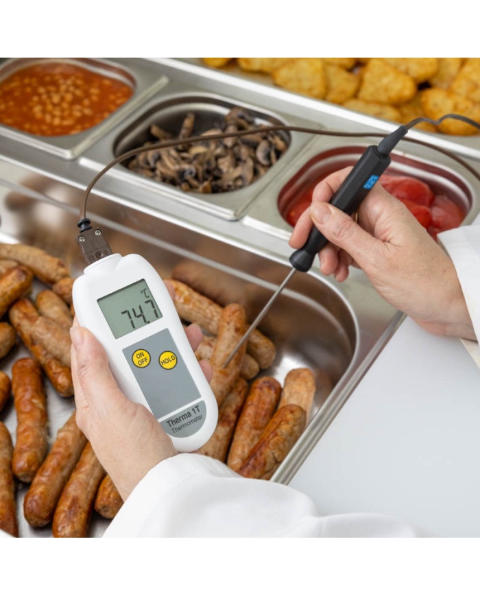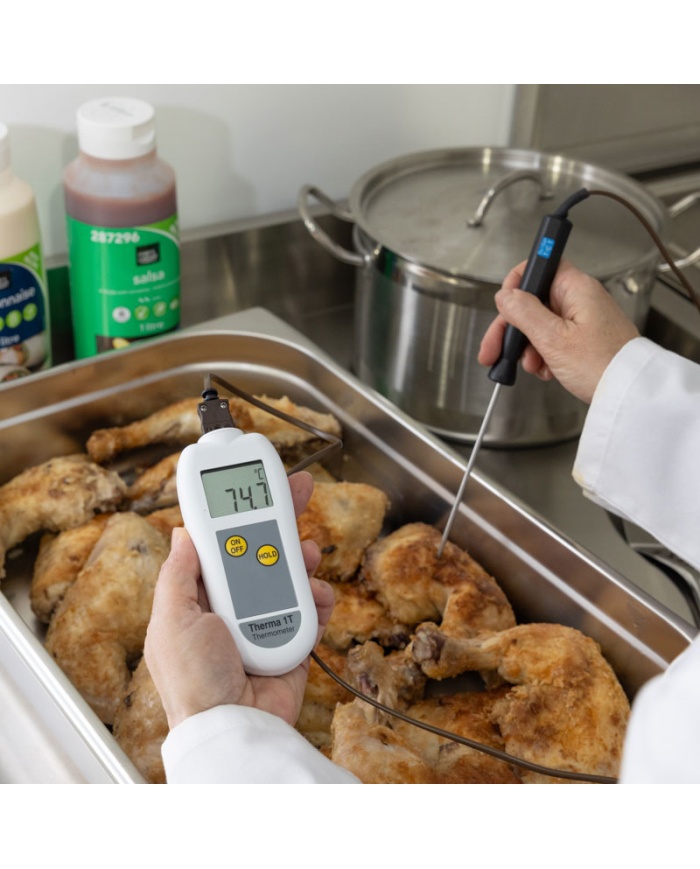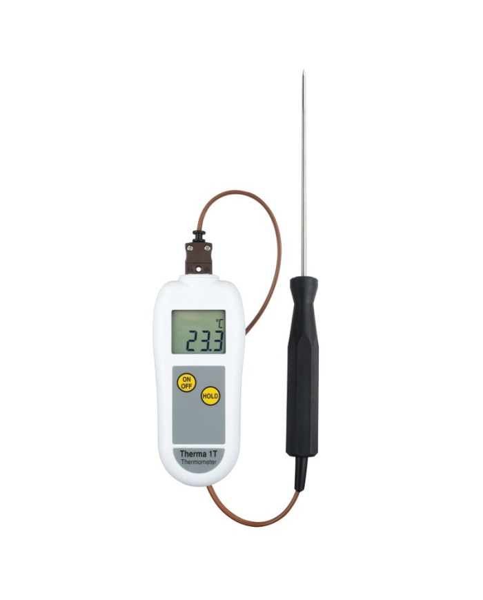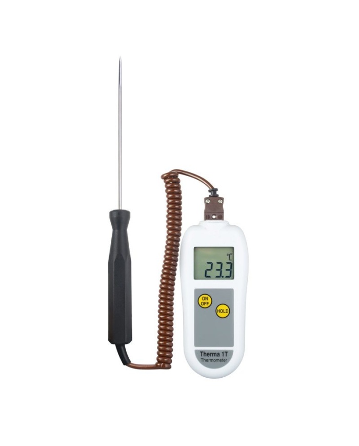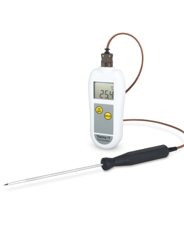Therma 1T-termometern använder en typ T-termoelementgivare som erbjuder både snabb respons och ett mätområde på -100 till 400 °C med en upplösning på 0,1 °C. Varje enhet är inrymd i ett robust ABS-fodral som innehåller Polygiene BioMaster-produktskydd som minskar bakterietillväxten.