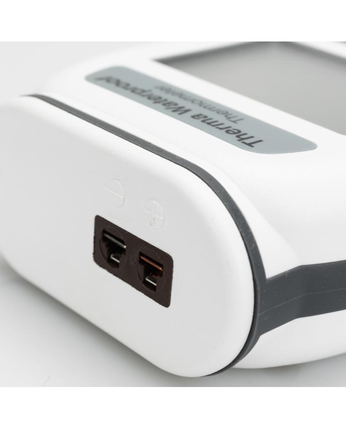 Therma Vattentät typ T-termometer är inrymd i ett robust vattentätt vitt ABS-fodral som erbjuder IP66/67-skydd. Termometern använder toppmoderna elektroniska kretsar, utformade för tillförlitlighet och användarvänlighet och kan nedsänkas eller tvättas under en löpande kran – perfekt för industriella applikationer.
