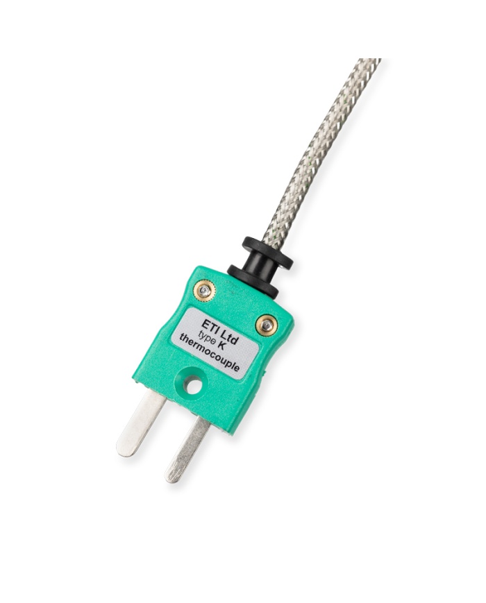 ETI Givare, termoelement typ K, snabb trådgivare Ø3mm, för höga lufttemperatur, t.ex. ugnar och värmeskåp, 1 meter värmetålig glasfiber-kabel