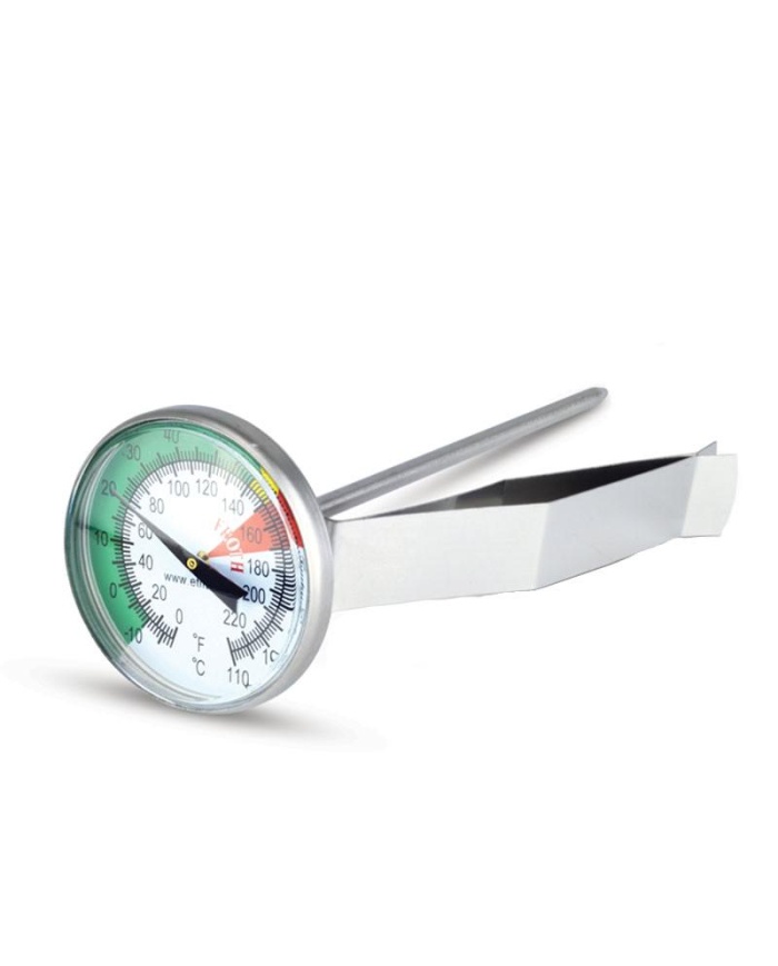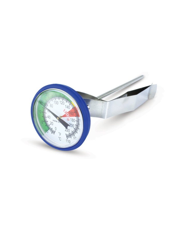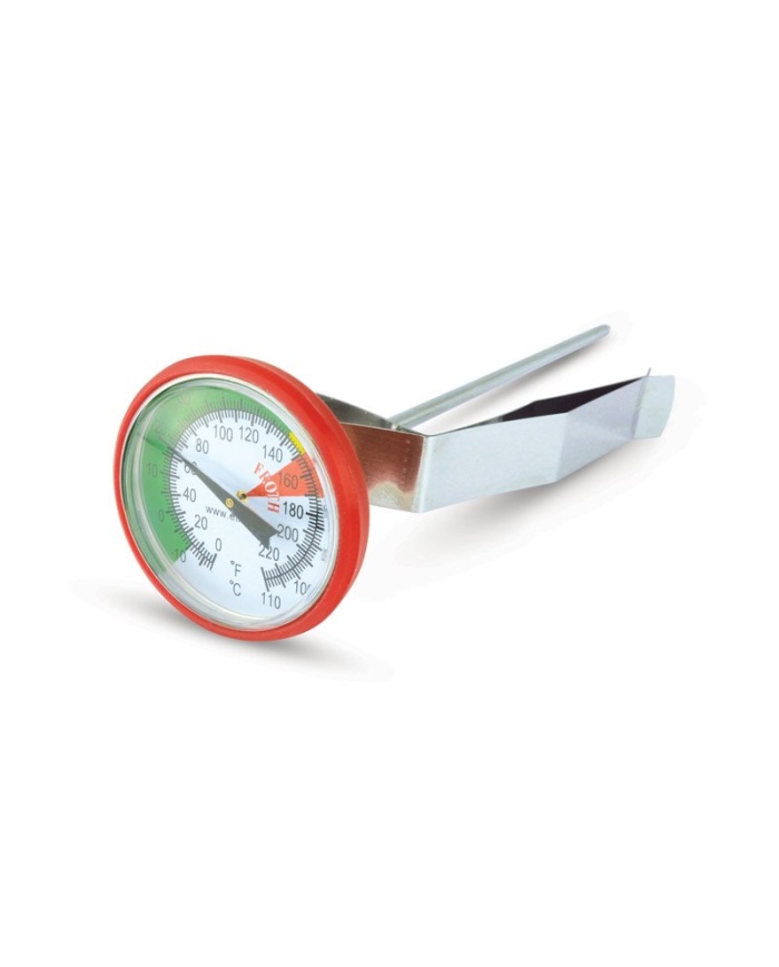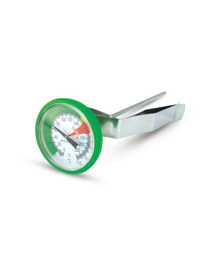 Dessa färgkodade barista- eller kaffetermometrar innehåller färgkodade höljen (röd, grön och blå) som hjälper baristor att enkelt identifiera olika typer av mjölk som används i rostfria stålkannor, för att undvika korskontaminering. De har också  en °C/°F-ratt med färgkodade zoner som indikerar den optimala temperaturen, vilket gör dem både enkla och snabba att använda. Skivdiameter 45 mm, skaftlängd 175 mm