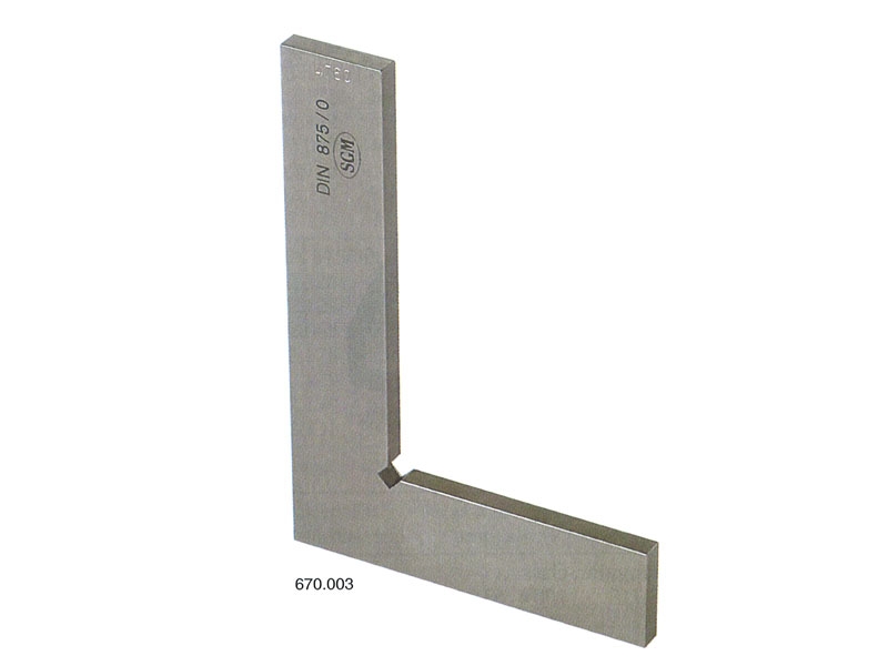 Plan stålvinkel, polerad mätyta, noggrannhet enl. DIN 875/0, med tillverkarens mätprotokoll, mått 100×70 mm, tvärsnitt 20×5 mm